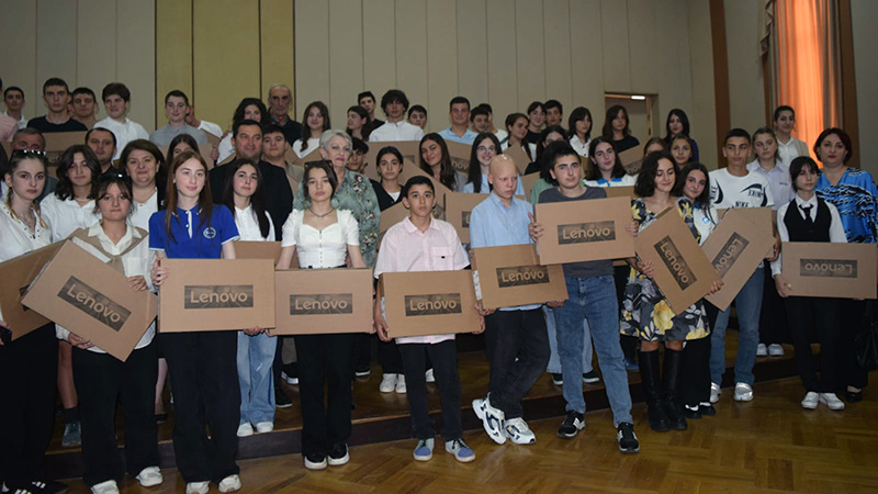 2022 -2023 სასწავლო წლის საბაზო საფეხურის წარჩინებულ მოსწავლეების, რომლებსაც პორტაბელური კომპიუტერები გადაეცა.