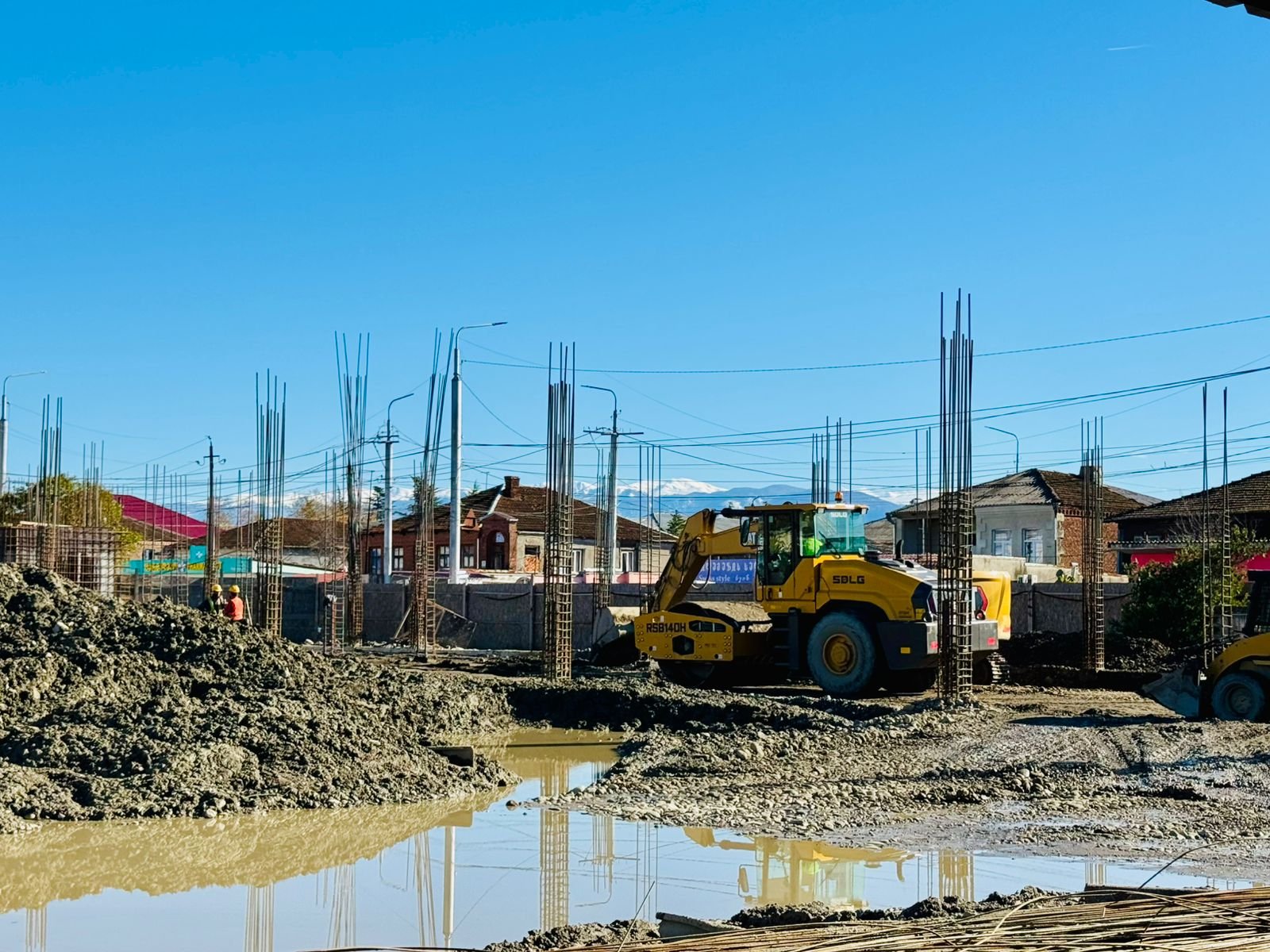 სკოლის მშენებლობის პროცესი მუნიციპალიტეტის მერმა, დავით ბახტაძემ, საგანმანათლებლო რესურსცენტრის უფროსთან, თინათინ ხარძიანთან და ადგულობრივი თვითმმართველობის სხვა წარმომადგენლებთან ერთად დაათვალიერა.