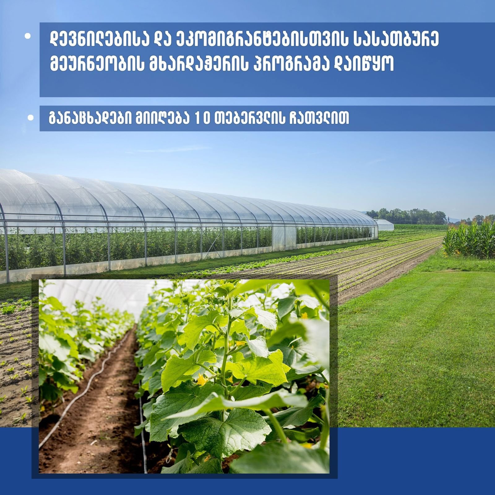 პროგრამა ვრცელდება მთელი ქვეყნის მასშტაბით. სათბურები აშენდება საკარმიდამო მიწის ნაკვეთებზე.