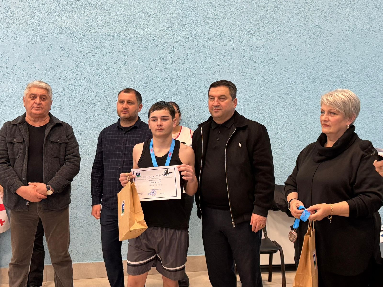 სამტრედიის მუნიციპალიტეტის მერი დავით ბახტაძე, საკრებულოს თავმჯდომარე ვაჟა სტურუა და ადგილობრივი თვითმმართველობის წარმომადგენლები სამტრედიის მუნიციპალიტეტის მერიის ორგანიზებით, ეროსი მანჯგალაძის სახელობის სპორტულ კომპლექსში, საჯარო და კერძო სკოლებს შორის გამართულ ცურვის შეჯიბრს დაესწრნენ.
