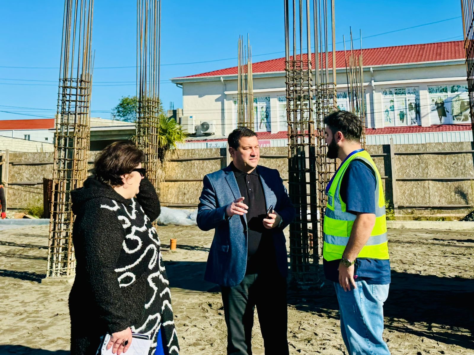 სკოლის მშენებლობის პროცესი მუნიციპალიტეტის მერმა, დავით ბახტაძემ, საგანმანათლებლო რესურსცენტრის უფროსთან, თინათინ ხარძიანთან და ადგულობრივი თვითმმართველობის სხვა წარმომადგენლებთან ერთად დაათვალიერა.