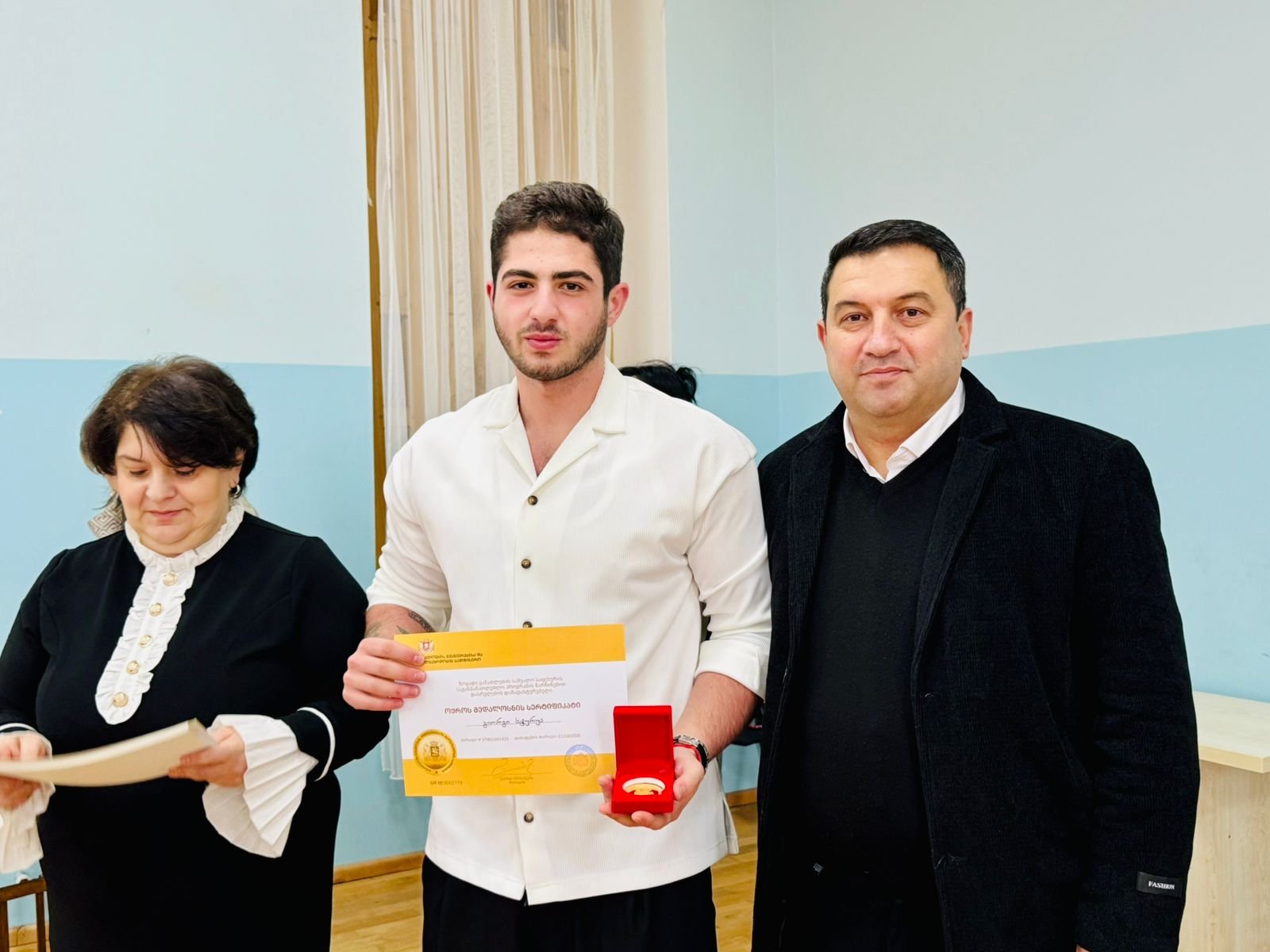 მუნიციპალიტეტის მერმა დავით ბახტაძემ, სამტრედიის საგანმანათლებლო რესურსცენტრის უფროსთან თინათინ ხარძიანთან, საკრებულოს თავმჯდომარის მოვალეობის შემსრულებელთან, ვაჟა სტურუასთან და ადგილობრივი თვითმმართველობის სხვა წარმომადგენლებთან ერთად ოქროსა და ვერცხლის მედალოსნები დააჯილდოვა.