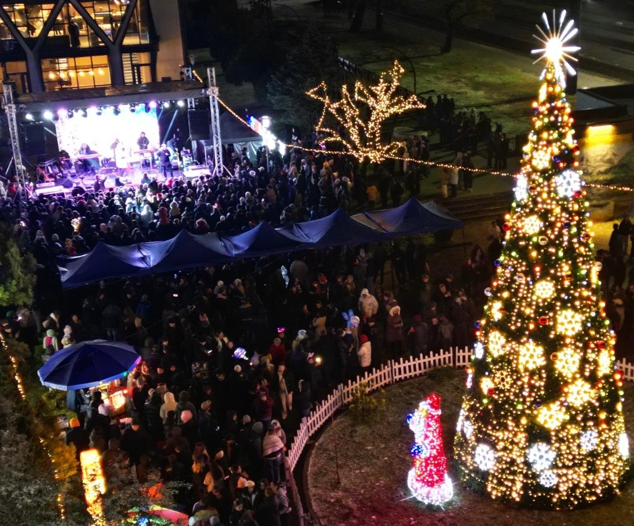 სამტრედიაში საზეიმოდ აინთო ქალაქის მთავარი საახალწლო ნაძვის ხე